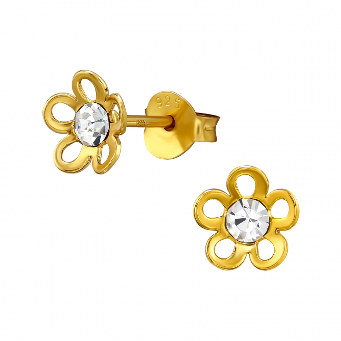 Cercei argint 925 placat cu aur 24K model floare de cristal Sophia Collection
