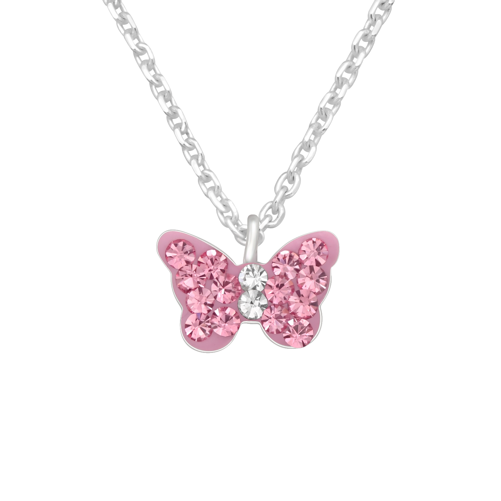 Colier copii Argint 925, model Fluturas cu cristale 36 +3 cm